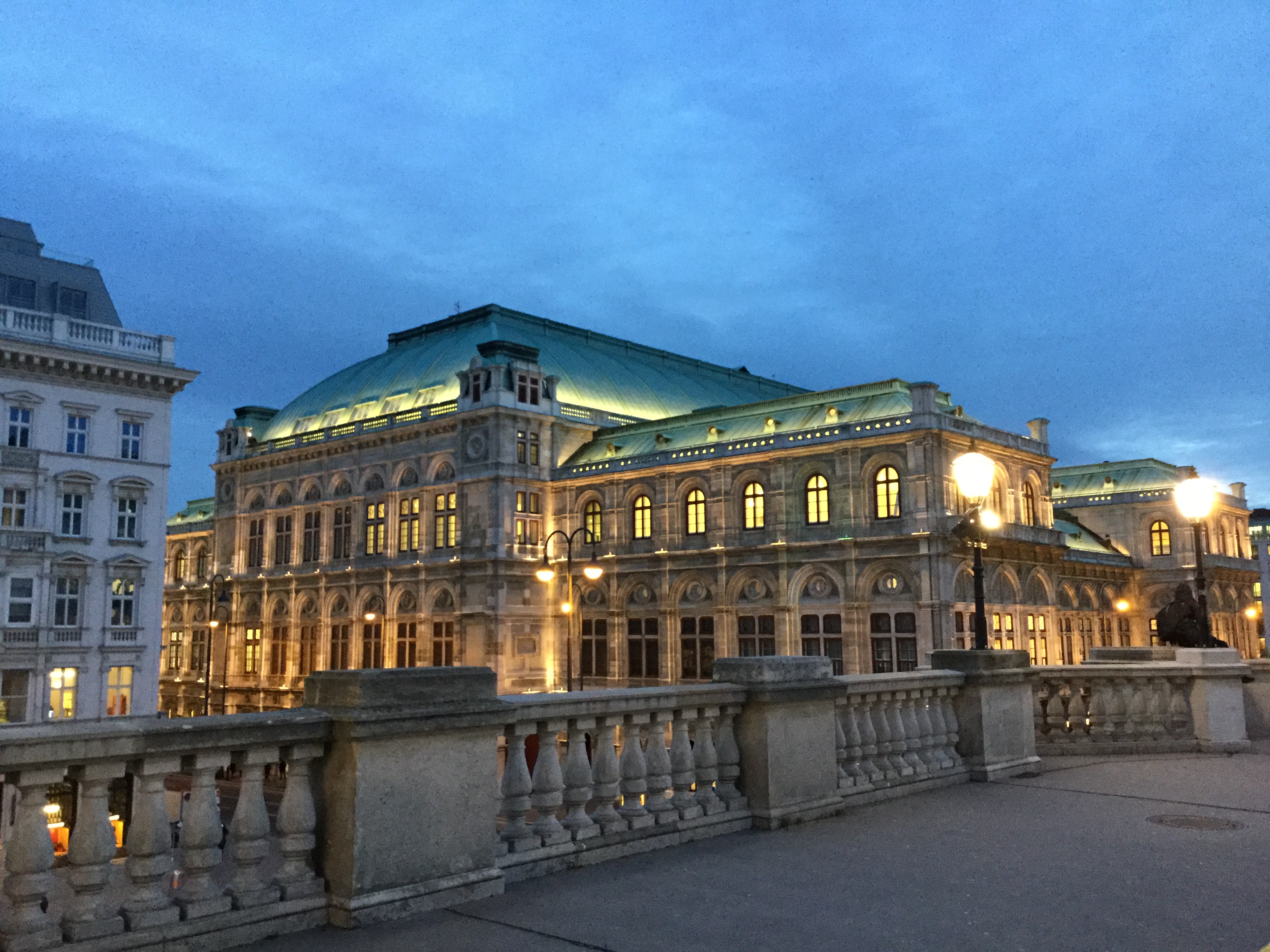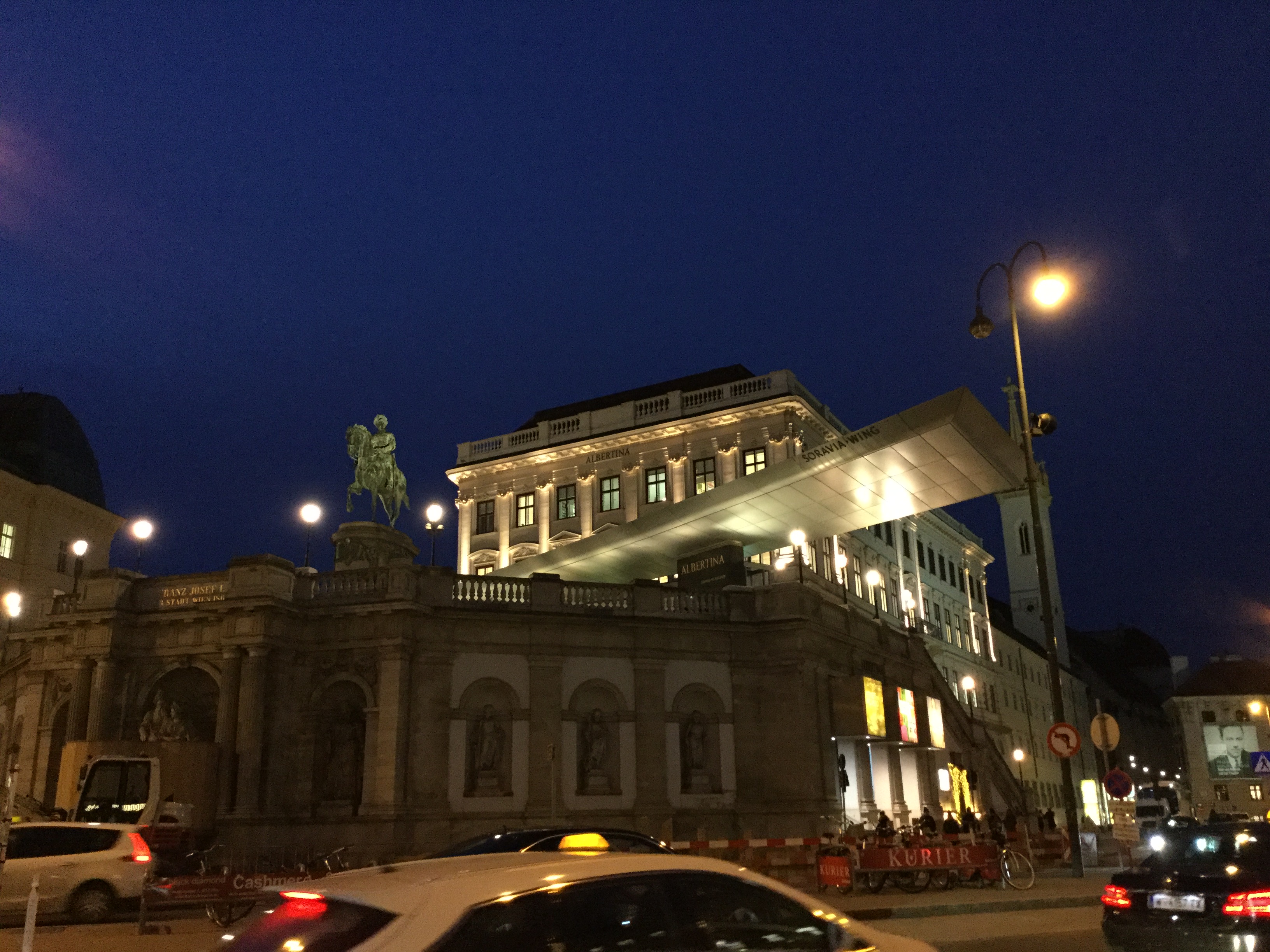 1월이라 관람을 하고나니 해가 져있네요. 아이폰으로 찍은 사진인데도 참 멋지게 나왔습니다. 정면에 보이는 건물은 비엔나 오페라하우스 (Oper) 입니다.