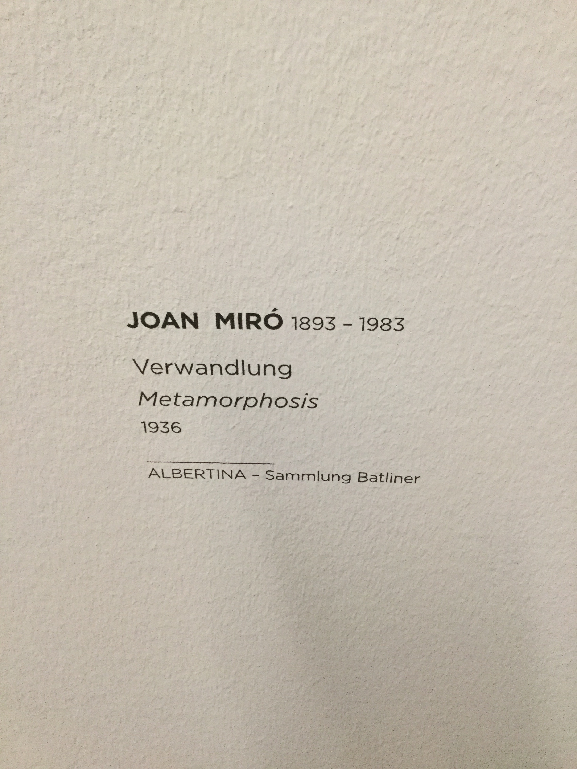 알베르티나에서 뿐만 아니라, 이번 비엔나 미술관 투어 중에서 가장 좋았던 작품이 바로 아래 보시는 호안 미로(Joan Miró)의 Metamorphosis 였습니다. 호안 미로가 유명하다는 건 알았지만, 작품을 실제로 본 건 처음이었는데. 다른 작품들도 꼭 한 번 보고 싶더라구요.