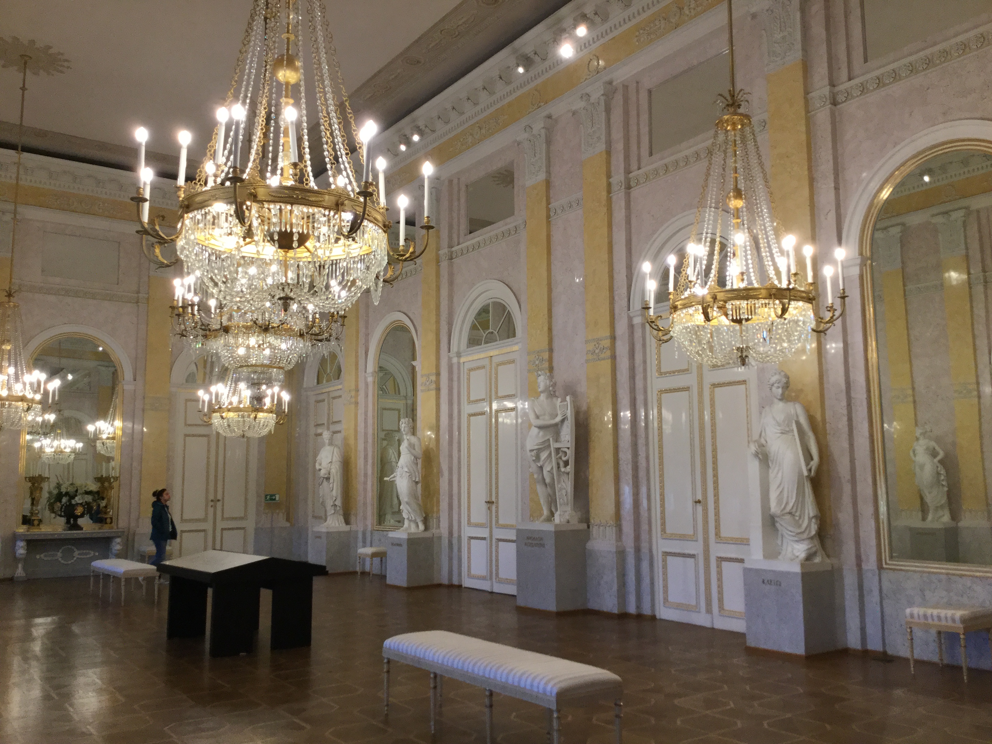 아래의 사진은 예전에 귀빈들의 응접실로 쓰던 공간을 보존하여 관람할 수 있도록 만들어 놓은 공간입니다. 저기 벽에 있는 분홍색/노란색 대리석들은.. 페인트칠이 아니라, 저런 대리석을 채취하는 곳이 따로 있다고 하네요..(예전에 독일 본 근처에 있는 브륄의 성에 갔을때도 비슷한 대리석 벽을 본 적이 있습니다.)