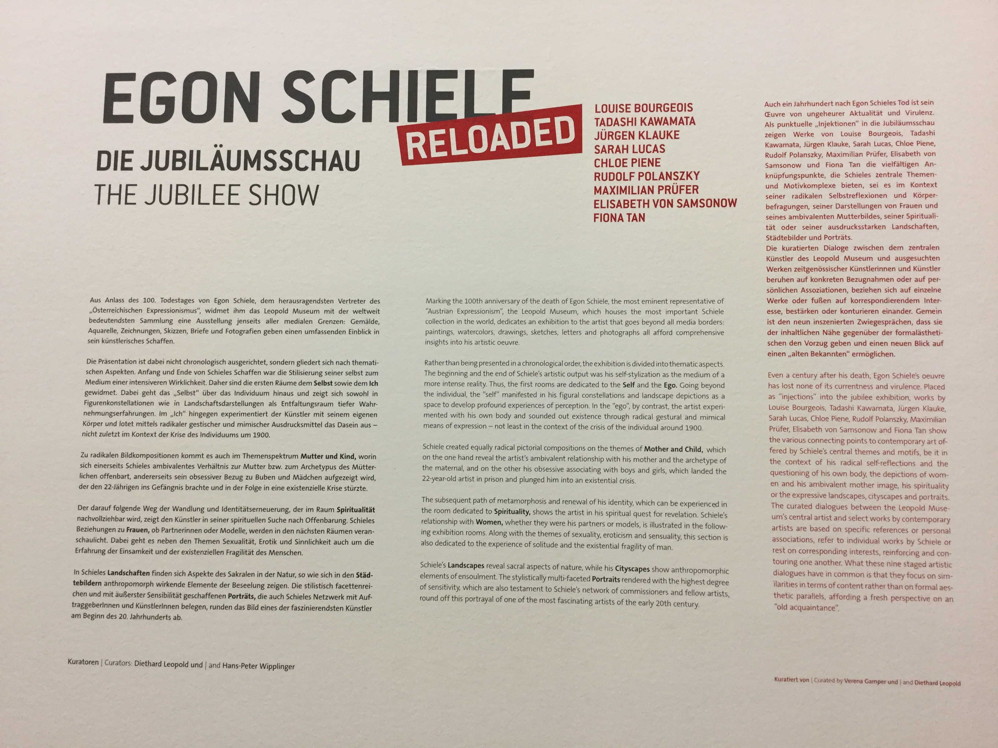레오폴드 뮤지엄에서 에곤실레 큐레이팅을 다시 했나봐요. 예전에는 쉴레 작품을 연대기순으로 전시했는데, 새롭게 큐레이팅 하면서는 테마별로 전시하고, 각 테마와 관련해 최근 작가들의 작품들과 같이 한 공간에 전시한다는 내용입니다. (아래는 전시 설명)