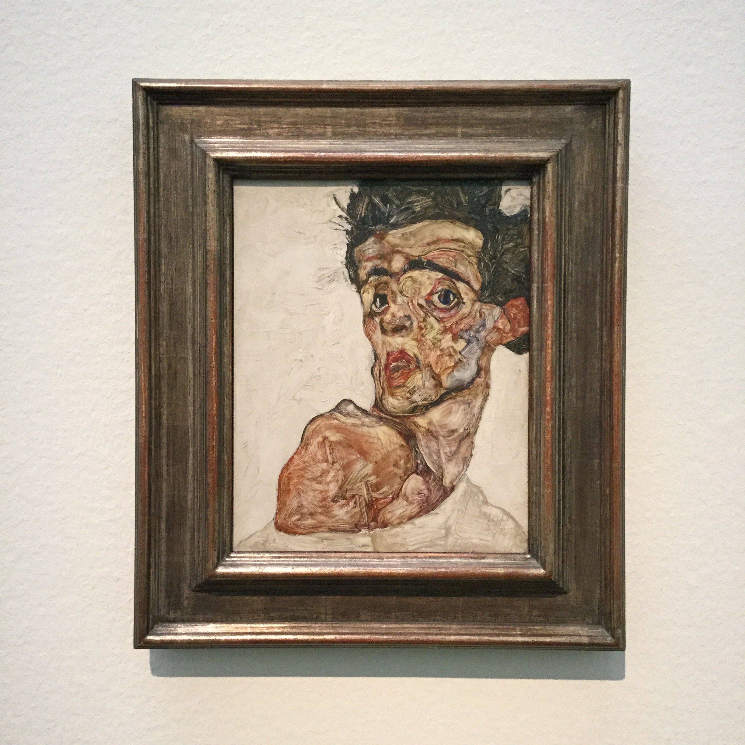아래는 에곤쉴레의 자화상 중 하나. 이상하게... 저는 비엔나 방문하면서 에곤 쉴레 작품에 대해서 많이 기대 했었는데, 실제로 보니깐 이상하게 감흥이 없더라구요... 너무 그림이 많아서 그런가;;; 아니면 전시된 작품이 혹시 레플리카 인가.. (그런데 저는 예술에 조예가 깊지는 않아서, 진품의 아우라를 감별할 수 있을 리가 없는데;;)