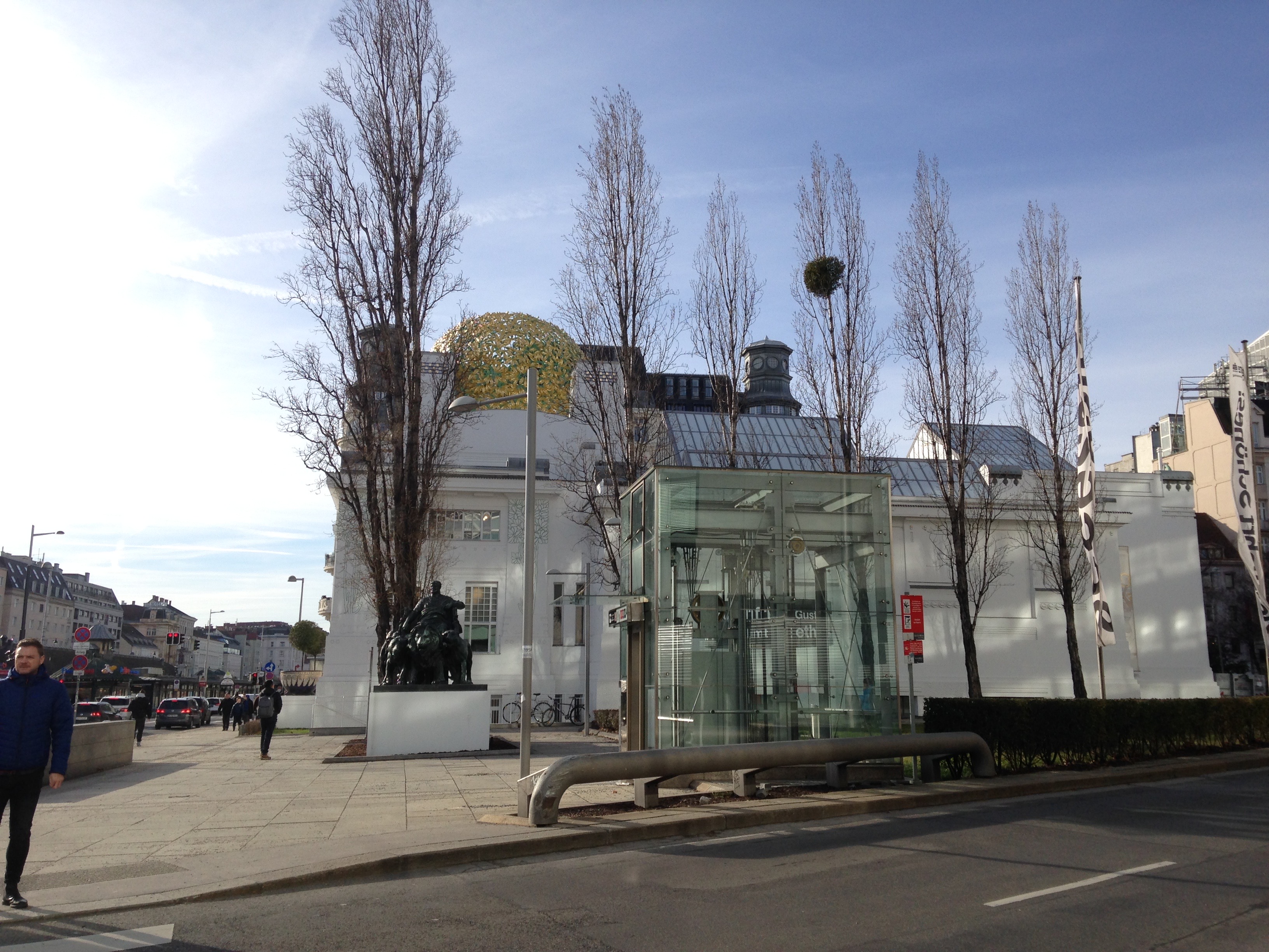 알베르티나를 나와서 다음에 향한 곳은 레오폴드 뮤지엄입니다. (이전 포스팅에서도 말씀 드렸듯이) 레오폴드 뮤지엄은 에곤쉴레의 그림이 많은 곳으로 유명합니다. 알베르티나는 오페라하우스 근처에 있고, 레오폴드는MQ에 위치하고 있어 2블럭 정도 떨어져 있는데, 걸어서는 약 10-15분 가량 걸렸던 것으로 기억합니다. 가는 길에 젠체시온(분리파 상징주의 회관)이 보이네요... 밖에서 보면 무슨 사이비 교당처럼 보이지만, 전시공간으로 지어진 건물이고, 지금도 미술관으로 사용된다고 합니다.