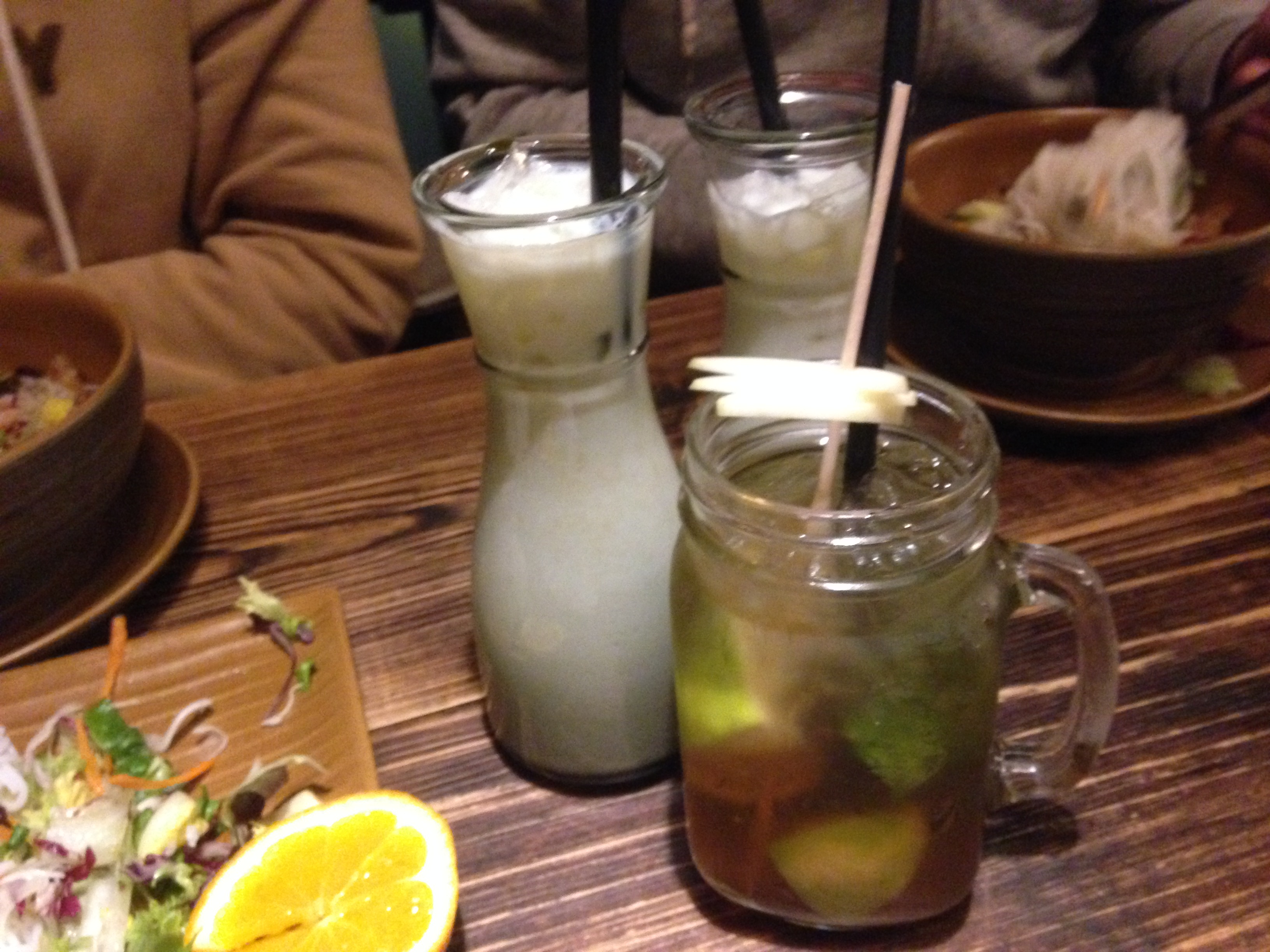 분짜와 함께 시킨 음료수, 저는 어제와 마찬가지로 베트남식 민트-라임 아이스티를 시켰고.. 두분은...? 뭐징? 막거리인가???ㅋ 라씨는 아닐거고... 코코넛밀크나 우유도 아닐거고.. 암튼 둘이 같은 걸 시킨 걸보니 맛있는 음료이었던 것 같아요.