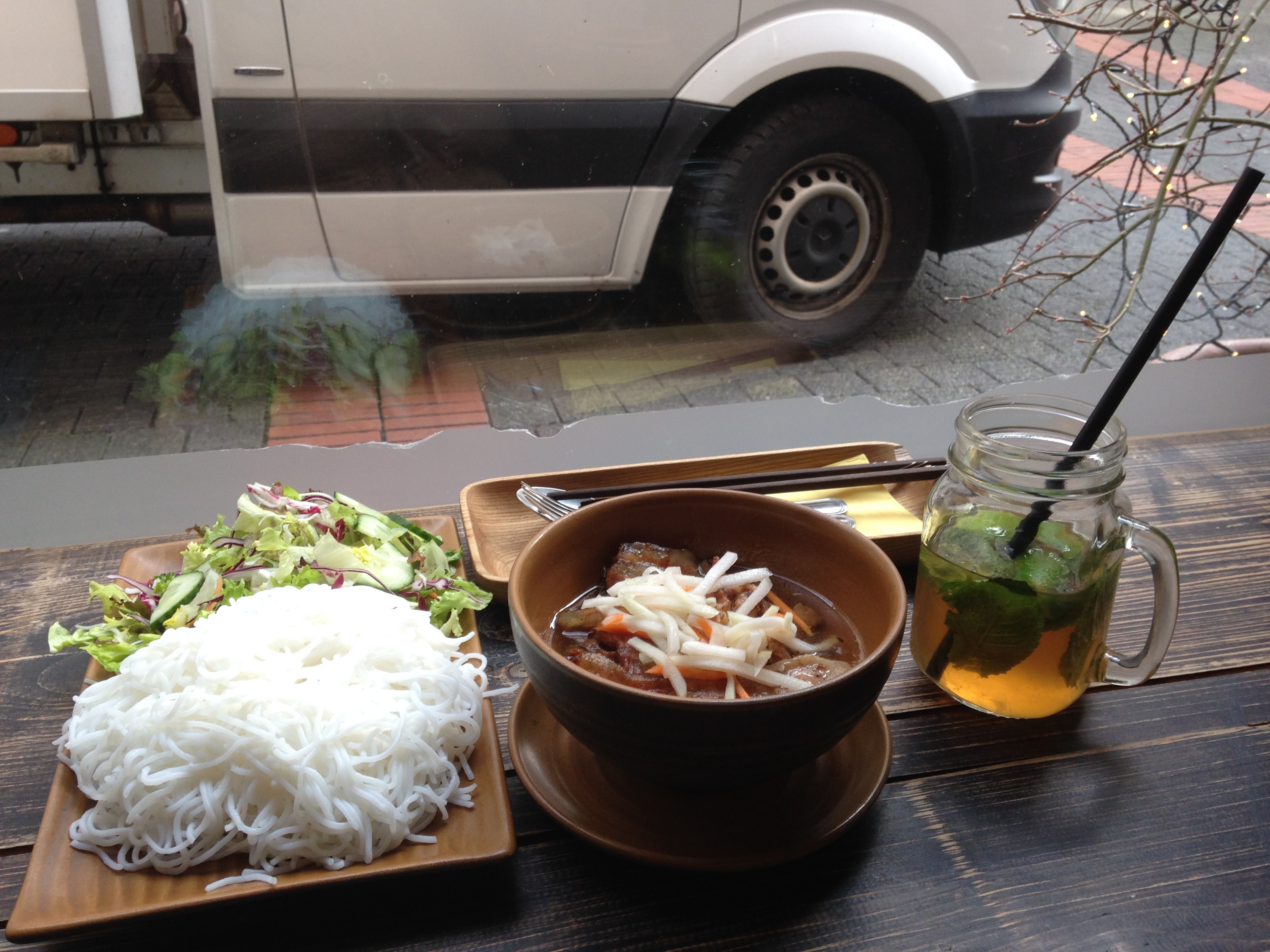 혼자 방문했습니다. 베트남식 라임-민트 아이스티를 시켜놓고 분짜를 기다리고 있어요.
