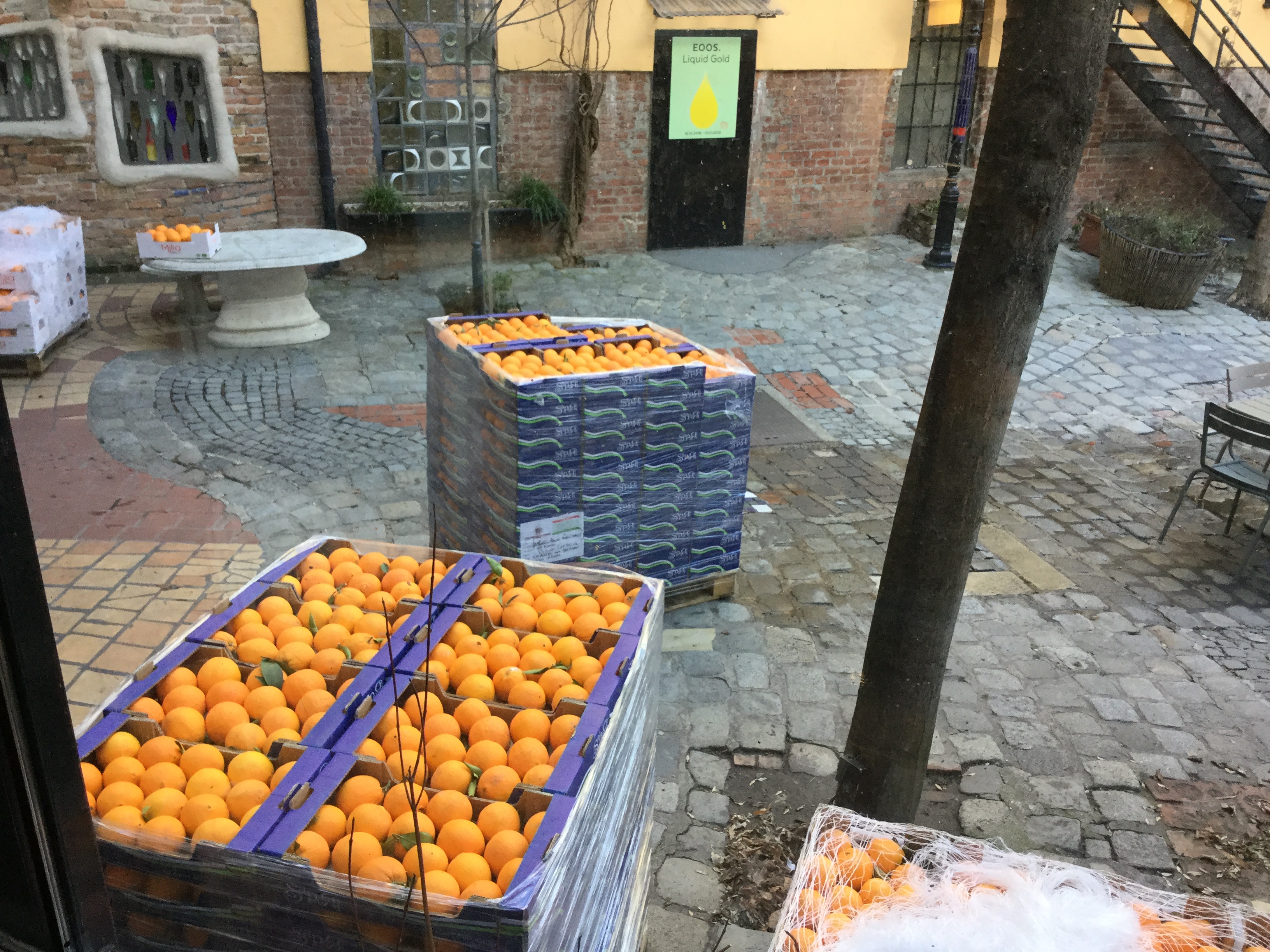 기획전시까지 야무지게 관람하고 나오니, 뒷뜰에 카페에서 쓸 오렌지가 배달되었네요… 세상에 저렇게 많이 팔 수 있는거예요? 인기 카페였군요.