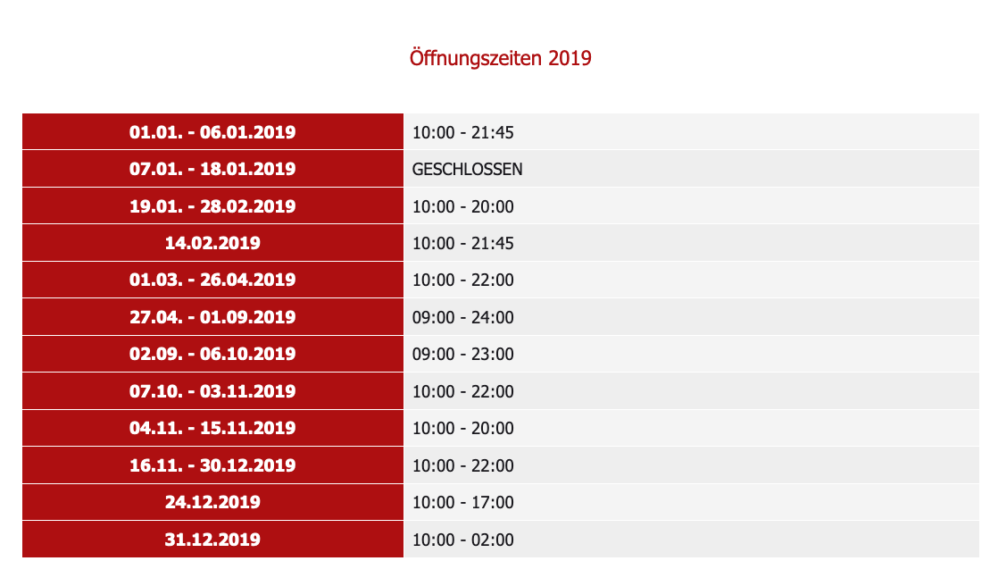 개관시관 (시기마다 다름, 아래 참조), 입장료: 성인 기준 12유로