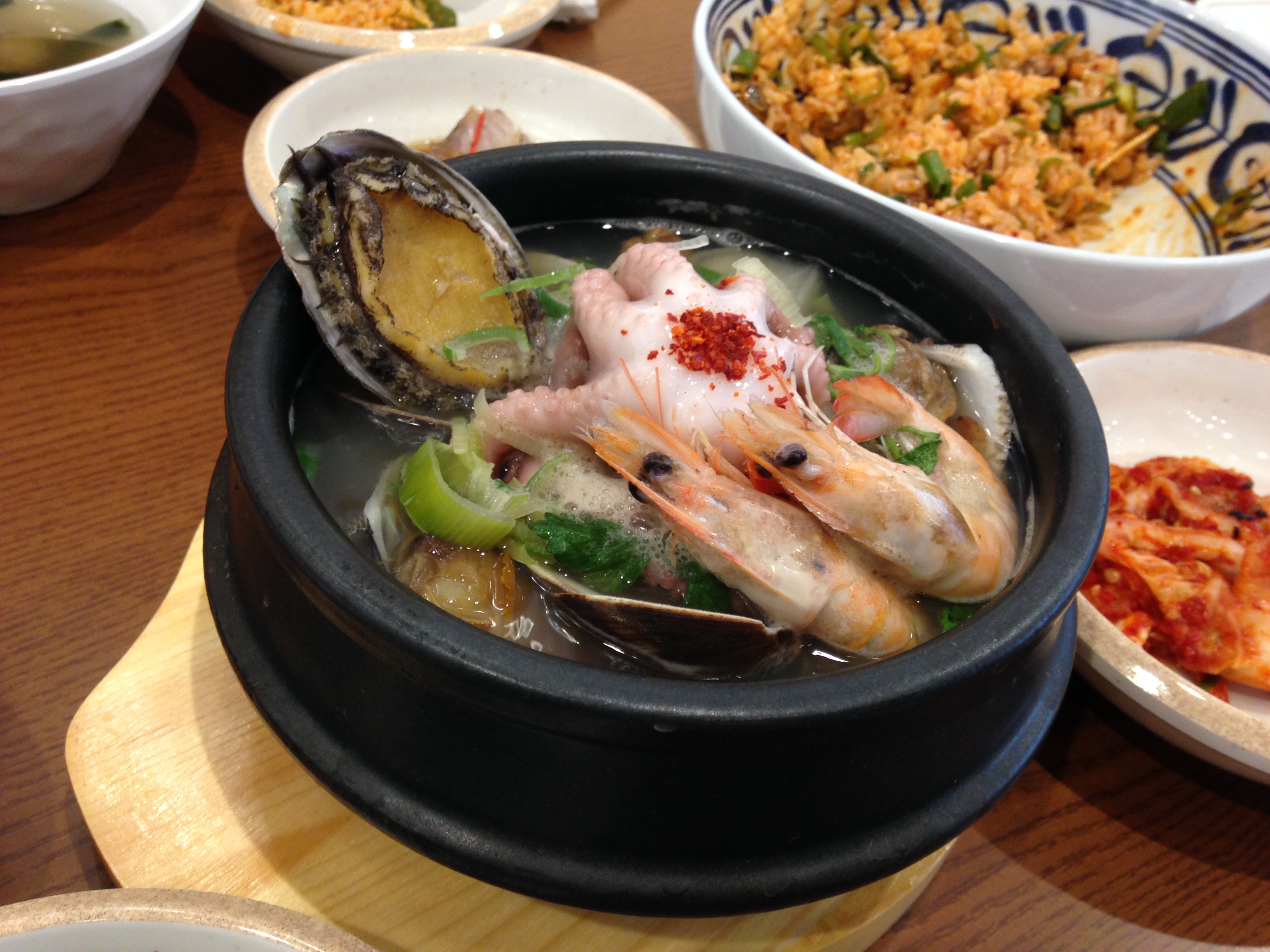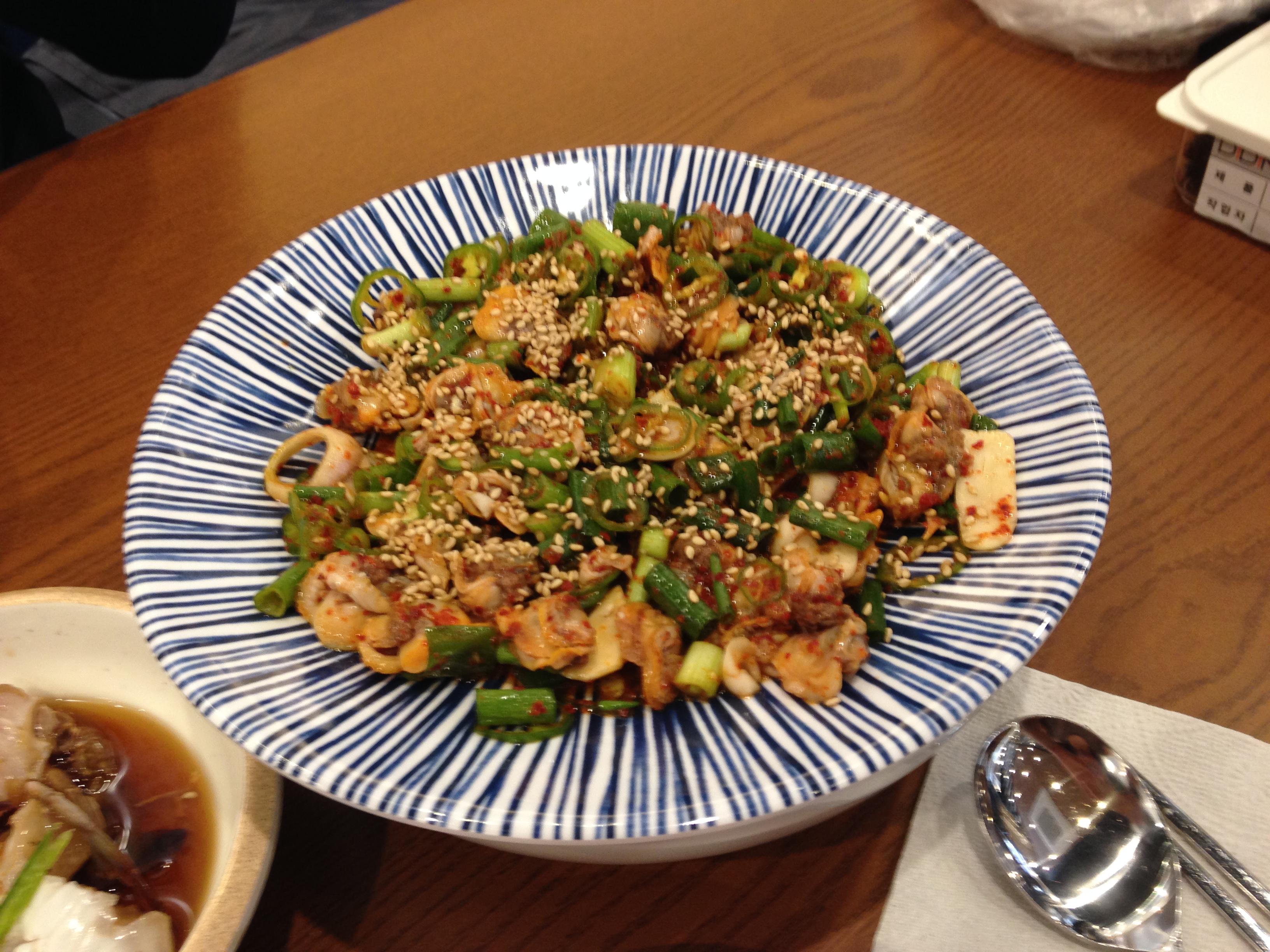 요새 핫한 연안식당입니다. 저희 동네에도 생겼더라구요. 꼬막 비빔밥과 해물뚝배기 (전복 1개 추가) 먹었어요.. 너어어어어어어어어어무 맛있는 정도는 아니었지만, 그래도 다른데 마땅히 갈 데 없고 해물이 땡긴다면 한 번쯤 경험해 보시는 것도 나쁘진 않을것 같네요. 꼬막비빔밥 먹으러 갔다 2명이라서 해물뚝배기를 시켰는데, 해물뚝배기가 국물도 맑고 해물도 정말 많이 들어었어요. 쭈꾸미도 1마리 들어있고, 새우도 2개 들어있고, 엄청 큰 꼬막도 들어있고… 바지락과 모시조개가 10개 이상 들어있어요.