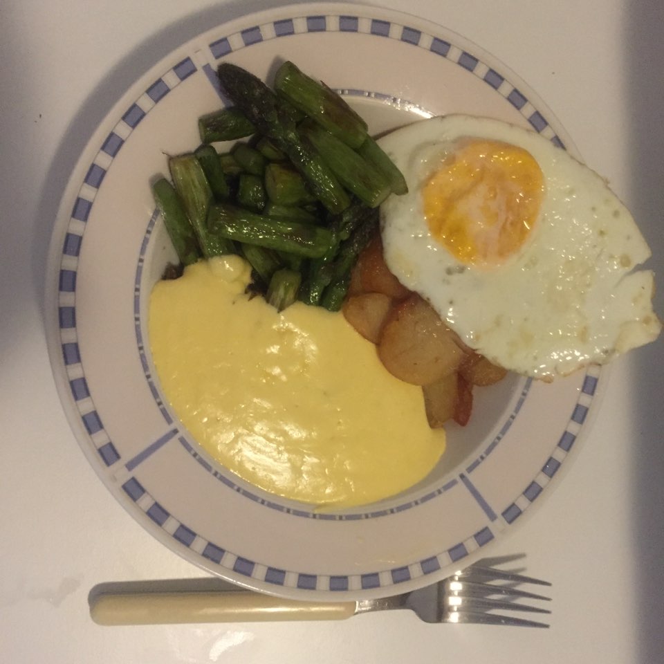Bratkatoffeln을 제품에 나와있는 요리법을 따라 볶아주고, 그 다음 Spargel을 팬에 넣고 약간 흐물흐물해지고 고소한 냄새가 날 때까지 볶습니다. Hollendais 소스를 팬에 넣고 끓을 때까지 데워줍니다 (보글보글하기 시작하면 바로 불을 꺼주세요). 취향에 따라 계란이나 베이컨을 함께 드세요!